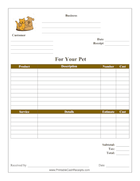 Pet Supplies And Services Receipt cash receipt